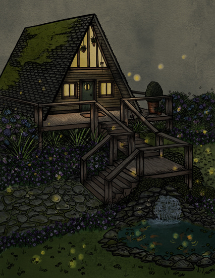 Garden Home. Katie Bork. 2022. Digital Photoshop Painting. 9x12. Available in Prints for Sale.Contact for Availability.