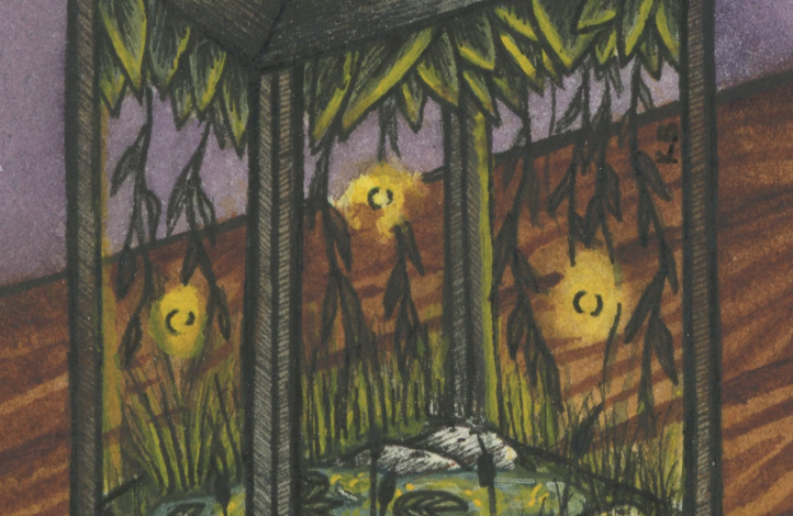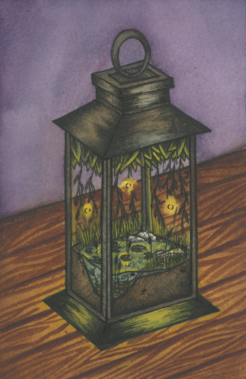 Lantern 1. Katie Bork. Watercolor, ink, gouache paint. 5 x 7 inches. 2022. Available for sale in prints and stickers. Contact for Availability.