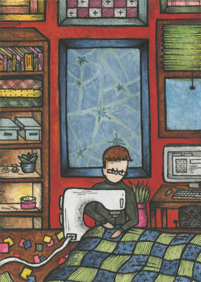 Quilt Work Miniature 2. Katie Bork. 2022. 2 x 4 inches. Watercolor, ink, and gouache paint.
