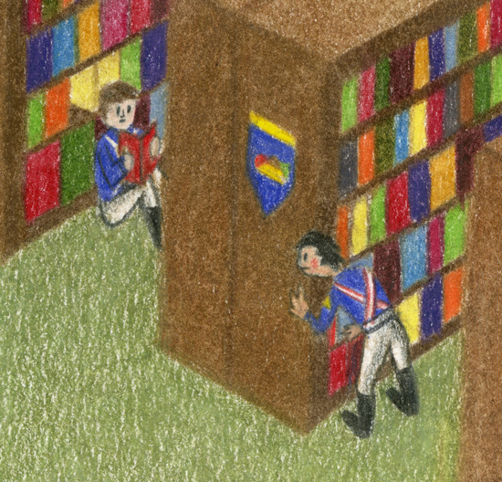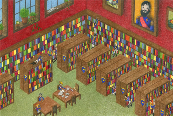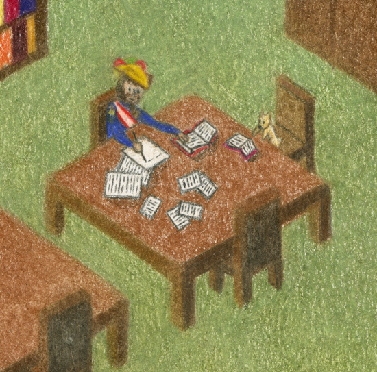 Taco Man Library. 16 x 10.5 inches. Colored Pencil on Bristol Paper. 2020.